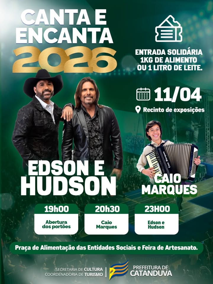 Horário: 19:00 - Período: Noturno Promotor(a) ou Responsável pelo evento: Prefeitura de Catanduva